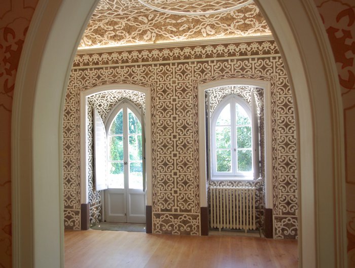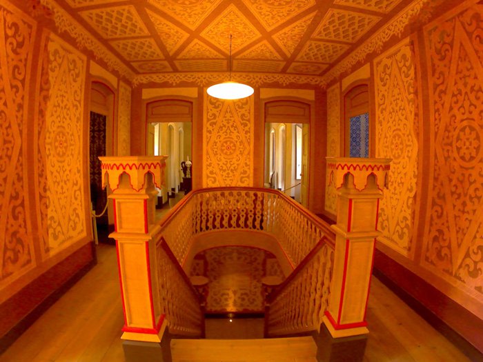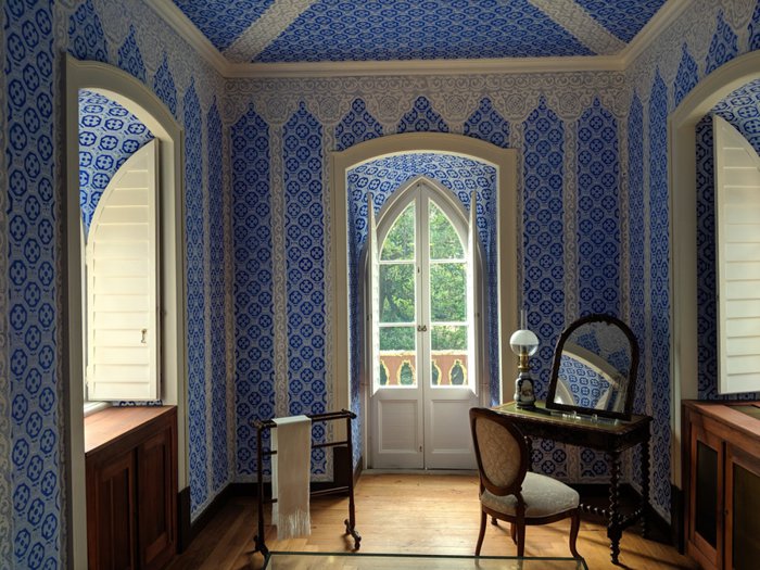 Chalet Countess Edla is located in the famous Pena Park and was built by King Ferdinand II and his second wife, Elise Hensler; Countess of Edla, between 1864 and 1869, in keeping with the model of the Alpine chalets that were in vogue in Europe at the time, and recently reopened to the public after a long process of renovation and restoration after its building was destroyed by fire in 1999. The building is very picturesque and features painted exterior plaster to imitate wood cladding , and a lot of cork was used as a decorative element to decorate it and to cover door and window frames, cornices and balconies.