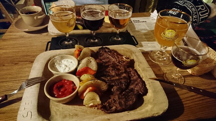 Khaoba Steak Restaurant is considered one of the most famous and distinguished restaurants in Zakopane, as it attracts many lovers of dishes prepared using a traditional barbecue grill (on charcoal), and enjoys a lively atmosphere full of music, classic decorations, and comfortable sessions. Its menu includes grilled sausages, steaks rich in barbecue sauce, Polish dumplings (with cheese, meat, spinach or potatoes), lamb shish kebab, salmon with grilled vegetables, etc. It also includes delicious desserts such as apple pie, pancakes with whipped cream and cheesecake. .