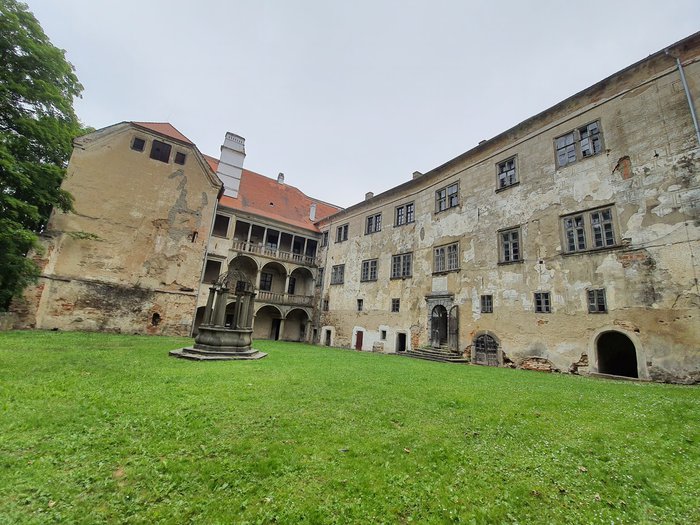 Bertnice Castle was built at the end of the fifteenth century on the foundations of a Gothic castle. Visitors can still see the remains of the Gothic structure in the courtyard of the third palace, and the castle contains more than 20 rooms with high ceilings of 5 meters in height, most of which are in neglected condition, and there is one of the halls in good condition and there are preserved oil paintings on its walls. You can take a tour inside the palace to see the remaining ruins and learn about its history.