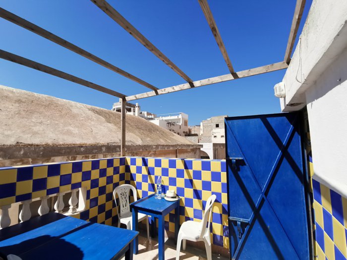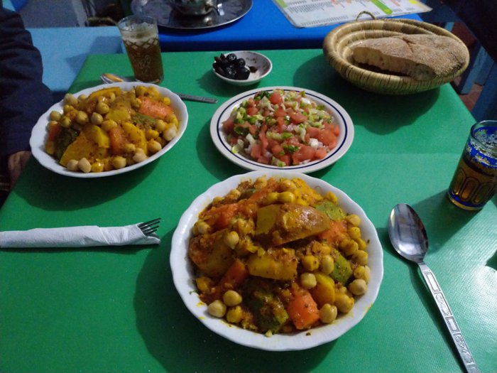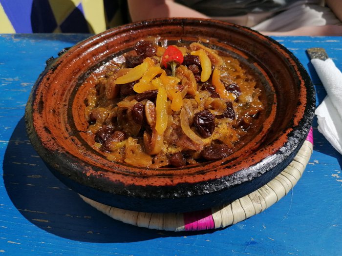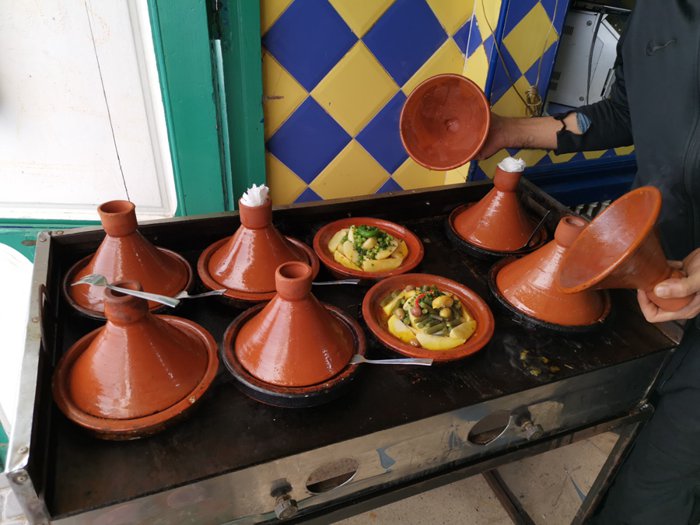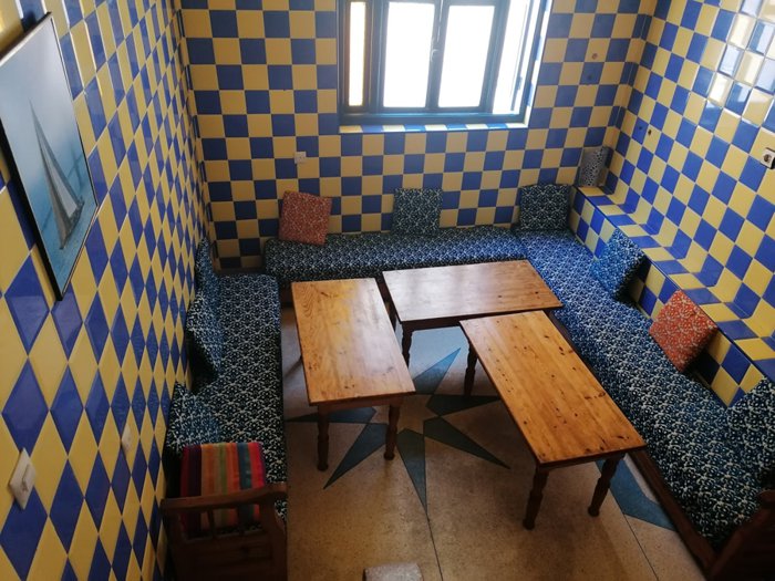 Chez Youssef restaurant, which is famous among locals and tourists, because it is one of the best unique destinations, for eating traditional meals, at the most appropriate prices, especially the local couscous dish, and the Moroccan tagine with vegetables, fried shrimp and grilled fish, which are served by the service staff in the place, on the seats Inside the restaurant in front of him.