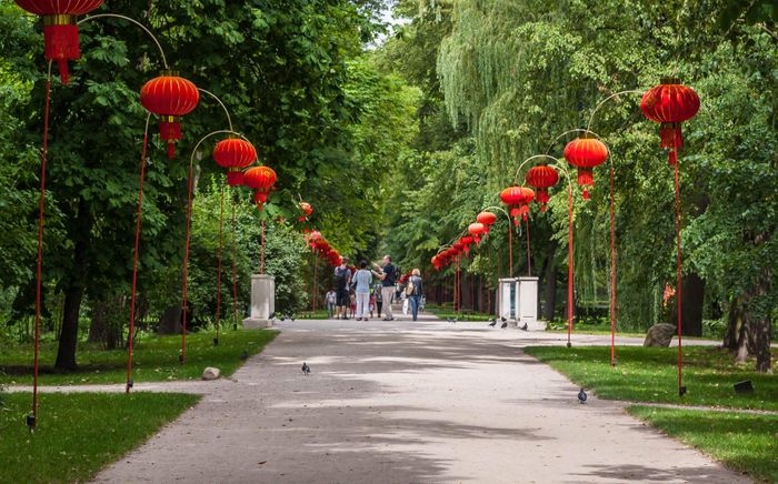 very beautiful area located in the northern part of the Royal Łazienki district, and it was designed in the Chinese style according to the historical models found in Prince Kung's Mansion in Beijing. The park was officially opened in 2014, as it contains inside On a charming little lake, it also contains many suites designed in the Chinese style and distributed over its area with ceilings made of glazed tiles coming from China.
