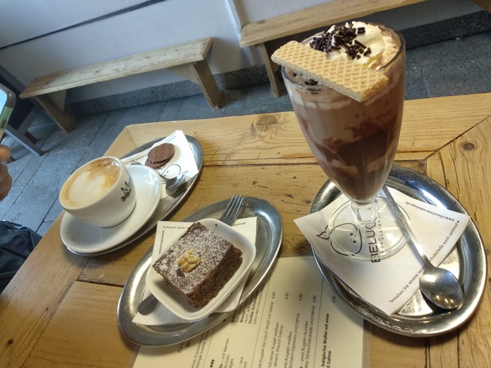 This place is a little gem. A small and cozy café with an emphasis on delicious chocolate either as a hot drink, dessert or cake. The very friendly staff make you feel right at home. As it is always said, chocolate brings happiness, and good chocolate makes you even happier. The staff will choose the right pieces to suit your taste if you don't know what to choose, and if you forget your diet plans for a little while, you'll have a great time.