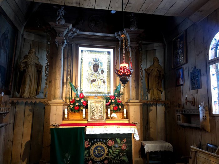The Church of Our Lady of Czestochowa is known as the "Church of St. Flemment", and it is one of the distinctive churches that was built in the nineteenth century AD. It also enjoys its unique architecture that led to its inclusion among the examples of wooden architecture, and it has distinctive interior decorations represented by popular paintings drawn by local artists. In addition, it includes three altars designed by the folk sculptor Wojciech Kułach.