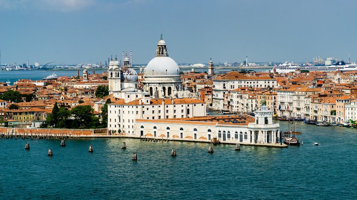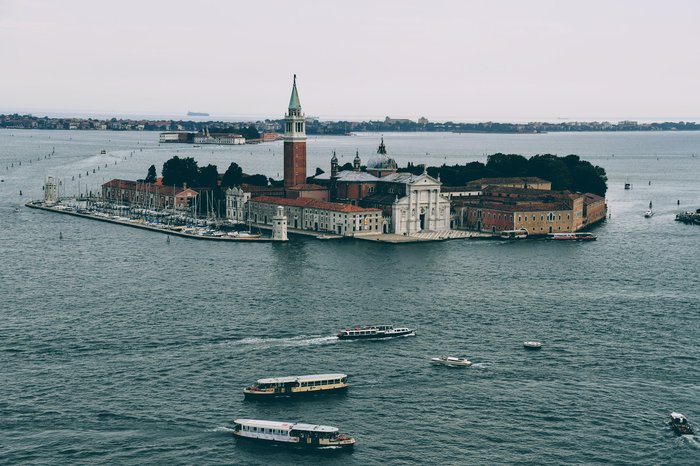 The Church of San Giorgio Maggiore has an architectural design inspired by ancient Roman temples, with origins dating back to the sixteenth century AD, and is distinguished by its white color that adorns the wonderful blue waters, in addition to its towering tower, which reaches a height of 60 meters, providing a charming view of the the whole gun.