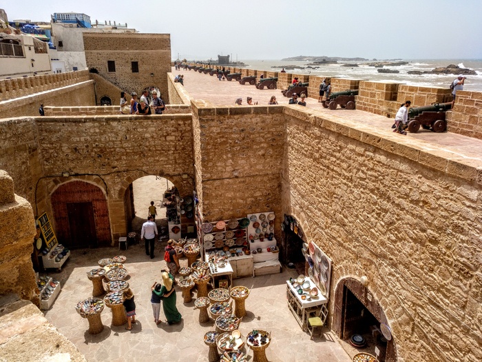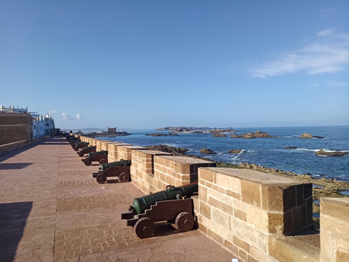 The walls of the old city in the city of Essaouira are considered the most beautiful ancient walls that you can walk around and see the long history that it tells and how it has repelled many attacks over the years. Despite the purely defensive purposes that were behind its construction, through small openings occupied by the nozzles of gunpowder cannons, the visitor to the Saqala city of Essaouira overlooks a wide sea horizon and a small island on which a defensive fort was also built, most of its walls have collapsed.
