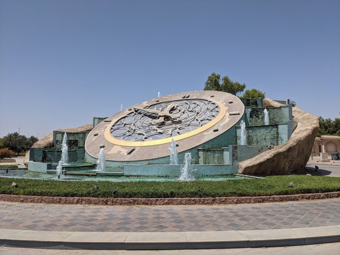 The Clock Tower is one of several distinct landmarks built in Abu Dhabi, Dubai and Al Ain in the 1970s when the UAE embarked on a modern development programme. It was designed in the form of a circular clock with hands that move periodically, and its edges were decorated with fountains and lights that complemented side by side to form a distinctive landmark, visible to the eye as they roamed the streets of Al Ain.