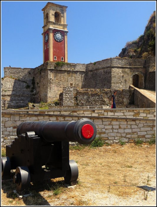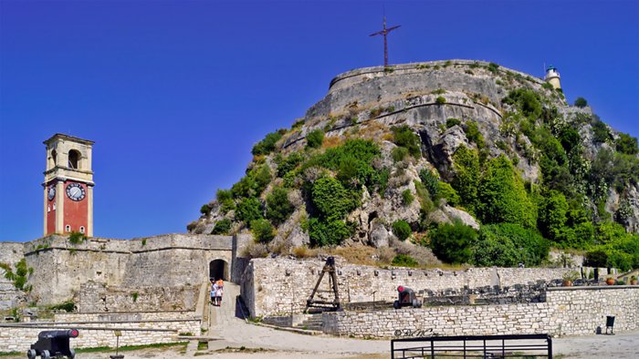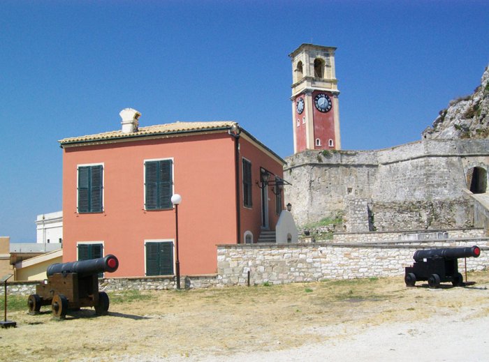 The red clock tower building is the first thing that catches the eye of tourists coming to the old fortress of Corfu by boat from the sea. Those wishing to explore the tower closely can climb one of the two stone stairs in order to reach it, as it is the highest spot in the castle. The tower is surrounded by a number of ancient ruins, stone ruins, and abandoned buildings that archeology and history lovers find great fun exploring.