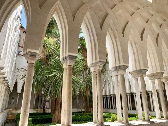 The Monastery of Paradise in Amalfi represents a true architectural masterpiece, as it combines European and Moorish architecture styles in one building, surrounded by a vast garden adorned with palm trees and colorful flowers, as well as artifacts distributed throughout. The monastery garden is likened to paradise due to its charming green nature. With regard to the history of the monastery only, it was built in the thirteenth century between the years 1266 and 1268, and the monastery gains its fame because it contains the relics of the body of St. Andrew, who was crucified in Patras, Greece, and his body was transported to Constantinople during the Fourth Crusade, and then his body was brought to Amalfi year 1208.