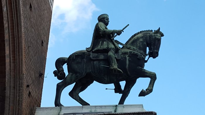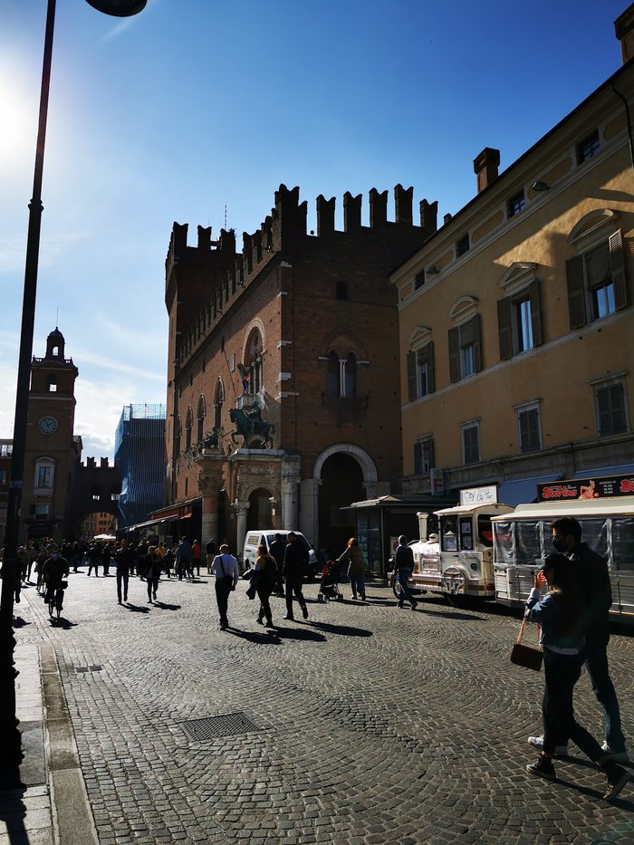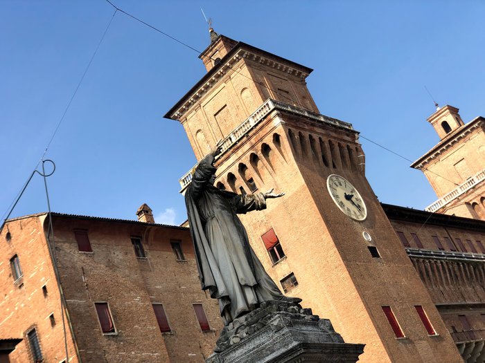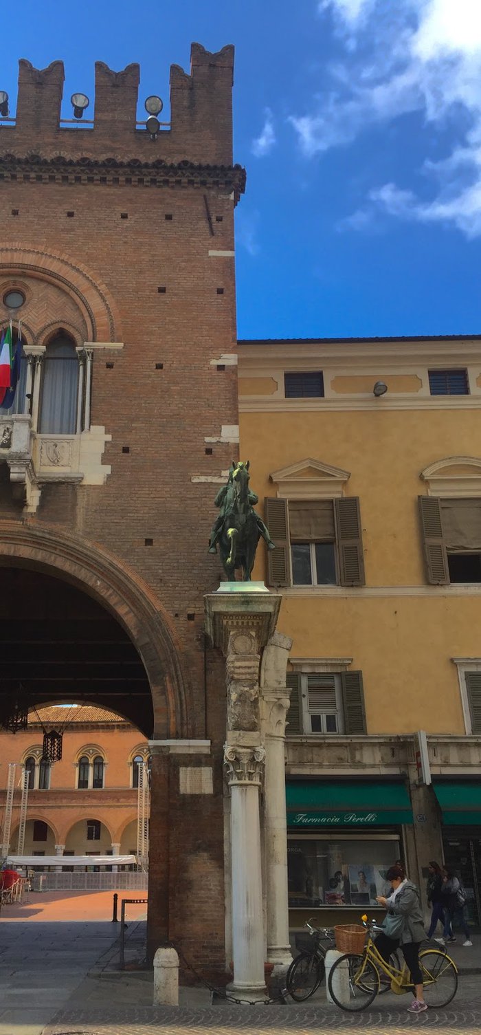 The double marble column of Borso d'Este is located near the city's cathedral, and is a shrine dating back to 1452 AD. It consists of several layers of pink marble taken from crushed tombstones from Jewish cemeteries. It was built primarily as a base for the duke's statue, and served as an entrance Historic of the Ducal Court.