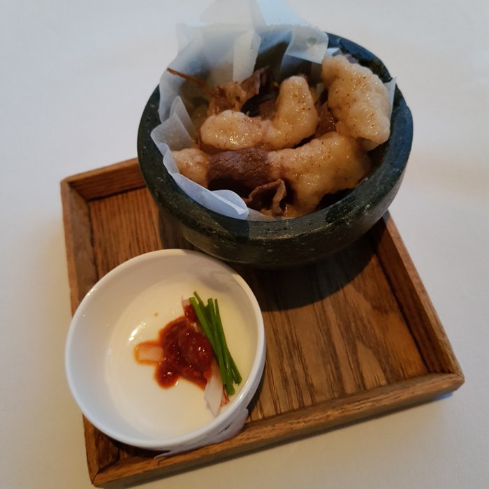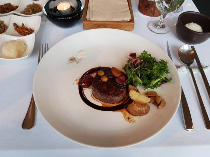 Kongdo Restaurant is a fine dining restaurant that strives to serve creative dishes whose main ingredients include "kung" (beans) and "jang" (fermented paste); They are two foods that highlight the science of fermentation in Korean cuisine. Signature dishes include grilled beef steak with soybean sauce and black garlic paste, and crab marinated in soy sauce using a special technique said to have been passed down from an aristocratic family in the Joseon era. Customers can enjoy the traditional Korean atmosphere while Eat them, and the view of Deoksu Palace garden enhances the experience.