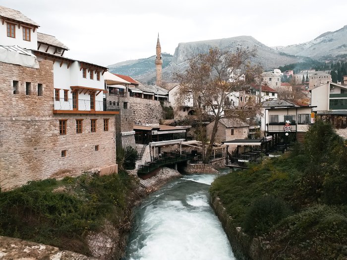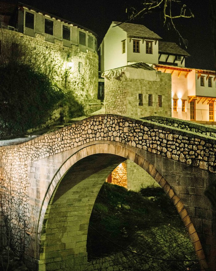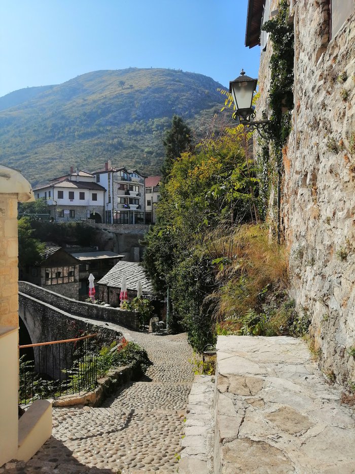 The crooked bridge is located next to the old bridge, which is a real symbol of the city that was destroyed in 1993. It is a stone bridge with one arch, small in size and very similar to the old bridge. It is worth noting that the bridge path is paved with cobblestones, as is the case with the main roads in the town. Floods in December 2000 destroyed this bridge, and then UNESCO started a reconstruction project funded by Luxembourg until the project was completed in 2001.