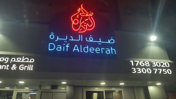 Daif Al-Deera is a popular restaurant with a modest decor and a simple and tidy interior design. It serves local food derived from the traditional Bahraini cuisine, including grilled meats such as kebabs, shish tawook, ribs and chicken wings, in addition to many appetizers and side dishes such as hummus, Turkish salad, eggplant moutabal and fresh Arabic bread. In addition to cold drinks of all kinds.