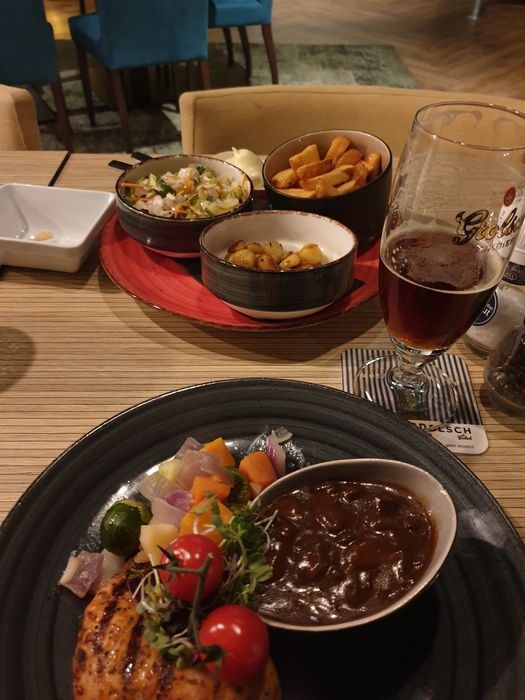 The most important feature of Dabur Restaurant, located in the heart of Essen, is its innovative and artistic way of serving dishes. In addition, it is characterized by elegant modern decorations, large glass facades, and a staff always ready to provide assistance. Its menu contains a lot of European food and appetizers, in addition to various desserts and refreshing drinks. In it, you will find grilled steaks of various kinds, burgers, ravioli, shrimp cooked with herbs, and many more.