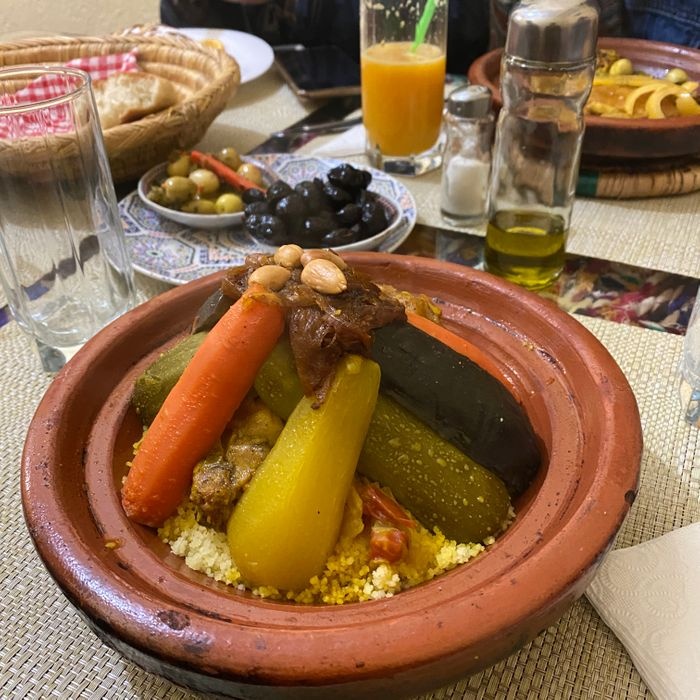 It is a local restaurant with traditional Moroccan decor and wonderfully colored lighting that will give you a warm oriental atmosphere. It is an old house behind Jemaa El Fna Square that has been newly restored by skilled craftsmen, where you will find authentic Moroccan dishes at very good prices. Among the options offered by Tajine with bread and salads Moroccan harira soup, couscous and many more.