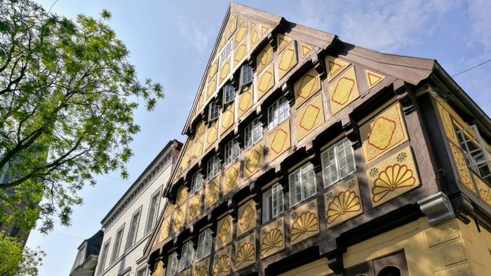 historic house dating back to the Middle Ages, specifically in 1502. The house is characterized by its amazing architectural design according to Christopher Stind's plans. The building underwent some restorations, the last of which was in 1617; which resulted in the house's present form. It is a sloped building consisting of a painted wooden roof on the outside and decorated on the inside, located in a beautiful antique cobblestone street surrounded by many other historical buildings.