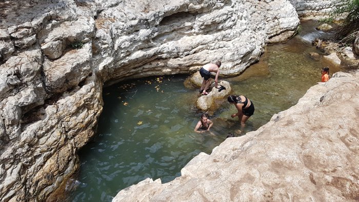 The Delbat pond is the largest pond on the Kaziv River. The pond is about 20 meters wide and the water depth at its lowest point is 1.5 metres. The pond is surrounded on all sides by large rocks, trees and cliffs. It is possible to practice many activities in the pond, such as swimming and relaxation, and around the pond it is possible to go on long and short walking paths, and it is also possible to camp, ride bicycles, and many others.