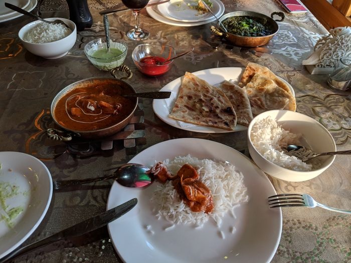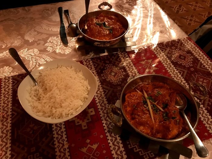 This distinguished restaurant is famous for professionally preparing delicious Arabic and Indian food at the hands of creative professional chefs, and offers customers a variety of delicious dishes that suit everyone's tastes, including; Delicious biryani rice of various kinds served with nuts, a dish of tandoori chicken, a dish of chicken curry with coconut milk served with basmati rice, Arabic kebabs and Indian kebabs that are characterized by the perfect seasoning, as well as a dish of butter chicken rich in the flavor of tikkamasala spices, wonderful samosas stuffed with vegetables, and others. Many dishes not to be missed. The style of the food is reflected in the interior decoration of the restaurant, which is famous for its traditional, antique design, with patterned sheets and classic wooden chairs.