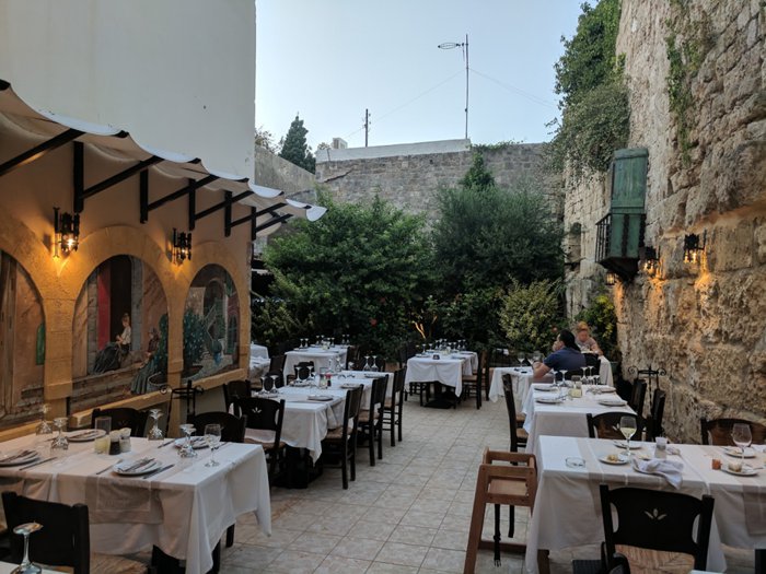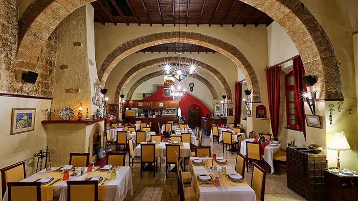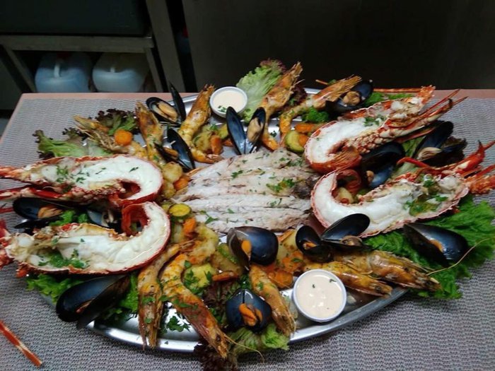 Dinoris Fish Restaurant serves various seafood dishes in a large indoor hall, which includes comfortable wooden chairs and tables that can accommodate various groups, large and small, and its decorations are dominated by traditional character and yellow and red colors, and the menu provides options of mussels, small and large fish, whether grilled or Fried octopus tips, shrimp spaghetti, accompanied by salads or french fries.