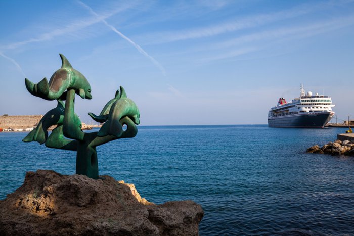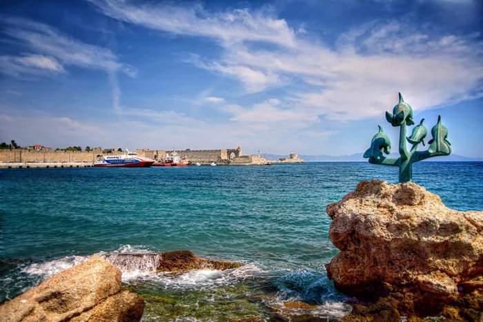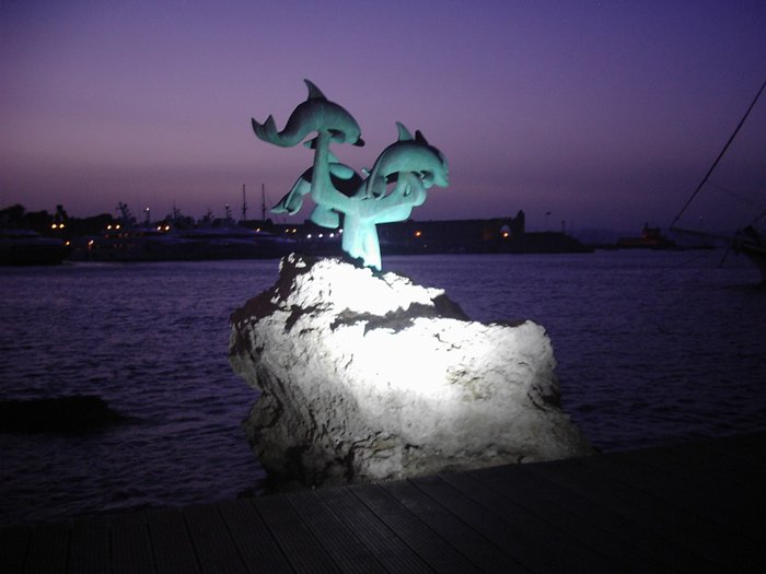 The statue of small dolphins, located in front of the Arnaldo Gate on the western side of the city, is a small statue of three dolphins, which seem to come out of the water to jump into it again, and the statue has turned into a distinctive tourist attraction, as many tourists visit it and take the most beautiful memorial photos near it, to be Witness their visit to the island of Rhodes.