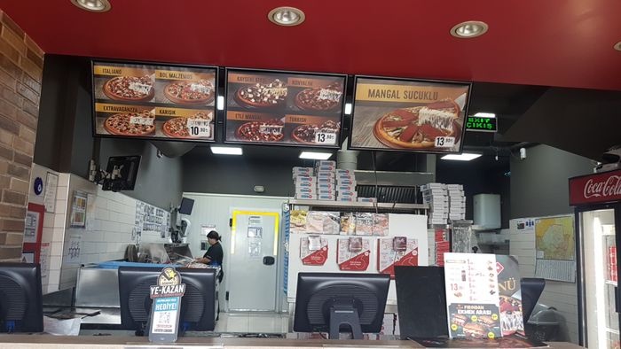 Domino's Pizza, Bornova Branch, is a suitable place for families and large groups of people. The place provides spacious indoor and outdoor seating where you can sit comfortably. The restaurant offers a variety of delicious pizzas such as pepperoni pizza, vegetable pizza, chicken pizza, and spicy pizza, in addition to various types of side dishes. Such as fried potatoes, crispy chicken balls, and onion rings. The service in the place is very excellent and was very well rated by the visitors to the restaurant.