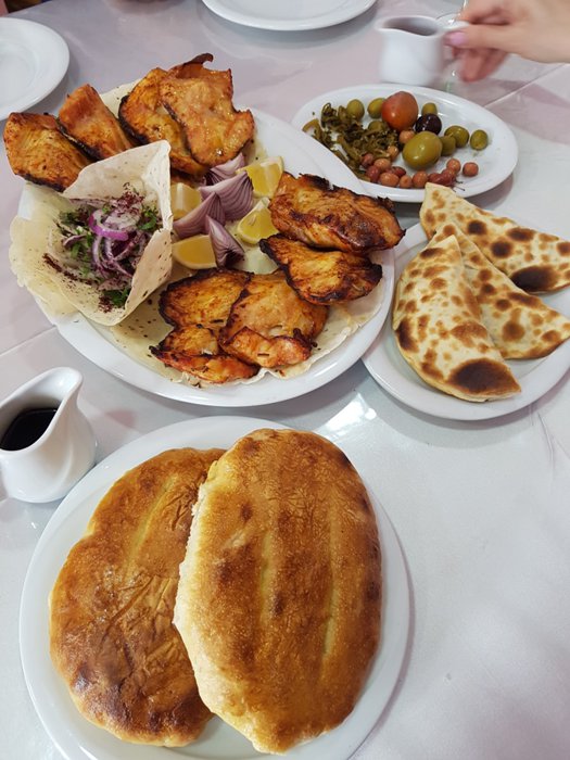 Dostyuk Restaurant enjoys beautiful views, whether from its inner hall through the large glass windows on the outdoor garden, or from the outdoor yard overlooking the beach. The restaurant serves many delicious dishes, including hot lentil soup, grilled fish pieces served with bread and pickles, meat pies and onions. And many other things that are served with refreshing drinks.