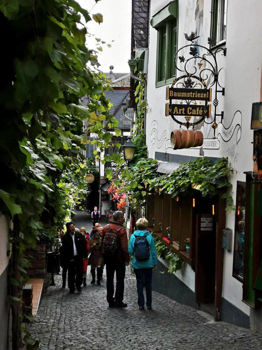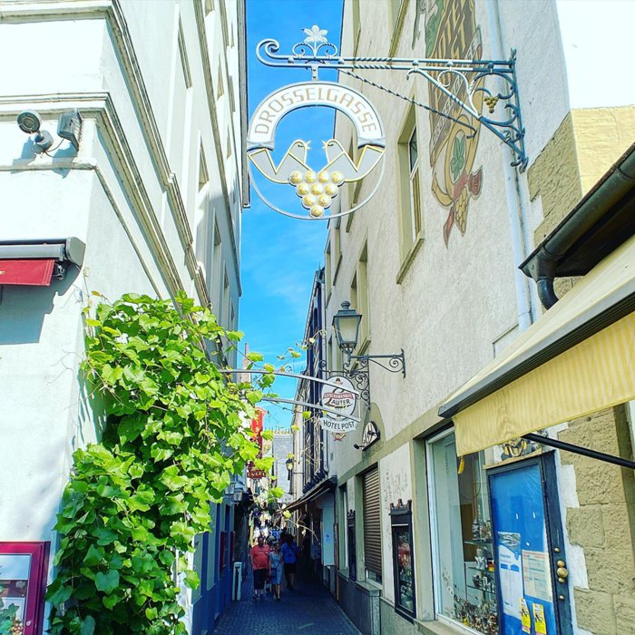 neighborhood located in the heart of the old town in the city of Ruedesheim am Rhein and is considered a meeting place for local residents and tourists from all over the world. The neighborhood is filled with old buildings in the traditional German style. The Rhine takes a break in this city, many restaurants and wine bars are built for them and hundreds of acres of grapes are planted for them.