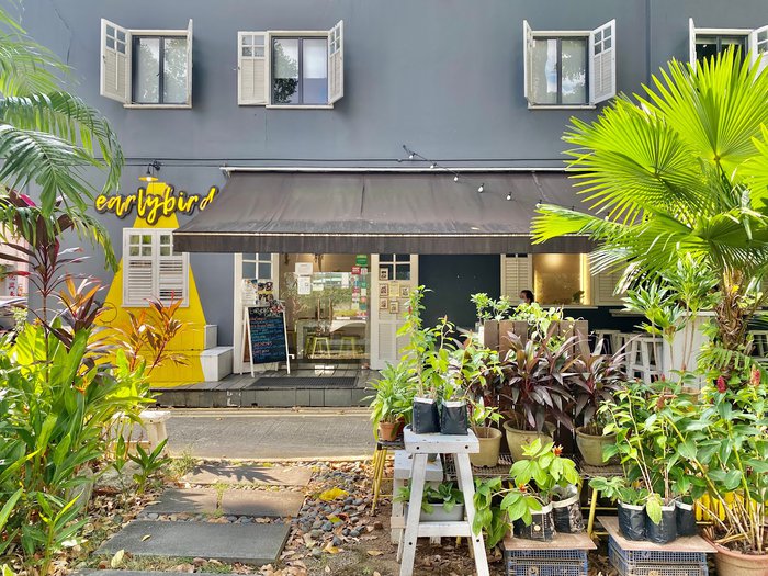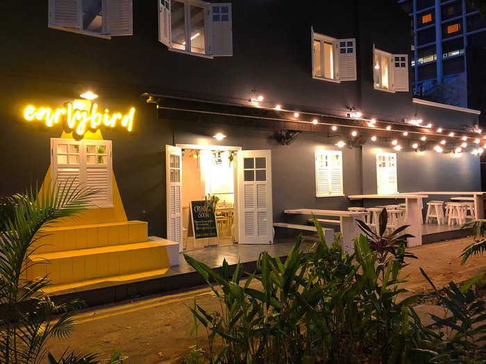 Early Bird Café is located on the famous Arab Street in Singapore, and it has a very beautiful design adorned with plants and bird drawings. It is an Australian café that serves a delicious breakfast and many delicious dishes and drinks, and is characterized by its wonderful service.