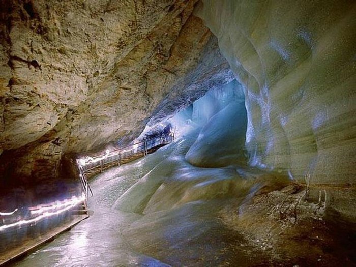 The Eisreisenvelt Ice Caves are the largest ice caves in the world, extending for more than 42 km into the ground. The cave was discovered in 1879, and it was opened to the public after building paths that connect the highest mountains and the cave. It is now visited by nearly 200,000 tourists and locals. , as it is approximately 11 minutes from the city of Wervine by car, many guides take visitors and accompany them inside the cave.