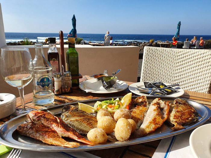 A little north of the main group of restaurants in El Golfo, El Calton restaurant tables extend on the rocks of the waterfront on a beautiful balcony with charming views. It also has a green dining room, and it serves daily caught seafood dishes that are served with lemon, salad and patatas arohadas, in addition to grilled food. Mixed seafood and grilled octopus.
