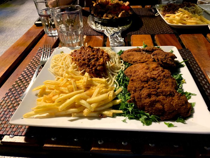 Al-Kababji Restaurant enjoys royal-style décor, as visitors will find luxurious ornate furniture, gilded murals, and huge chandeliers. These decorations give a distinctive and relaxing environment. This restaurant also has a games room for children, where they can play while their parents eat delicious dishes. On the menu, the restaurant offers distinctive Egyptian dishes, including kebabs, shish tawook, molokhia, grilled chicken, sausages, and many others.