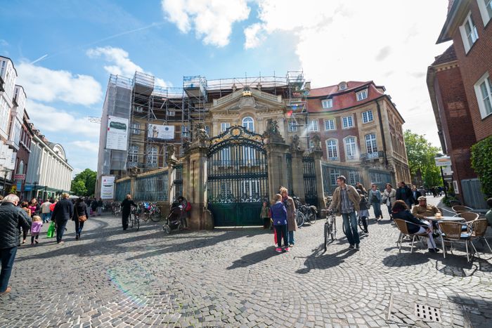 Erbdrosttenhof Palace is a unique masterpiece of its kind. It was built between 1753 and 1757 in the Baroque style, according to the design of architect Johann Conrad Schlaun. It is located in the heart of the city of Münster, and it is considered one of its most beautiful buildings. The outer part of it was rebuilt after the war. To serve as the State Office of Westphalia, and among its interior elements, the staircase and banquet hall on the first floor were restored to their former condition, and today the building is only accessible to the public during events hosted in the banqueting hall.