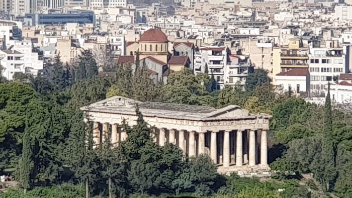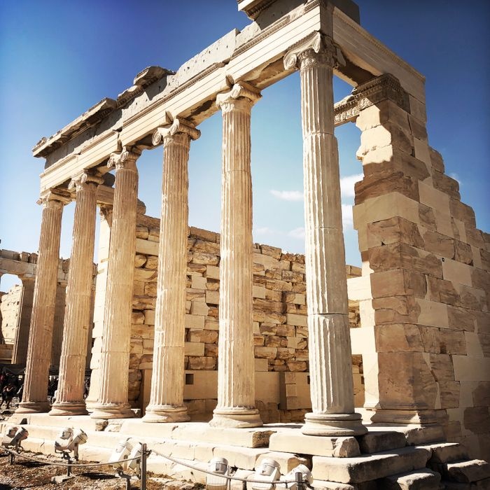 It is the second largest ancient Greek temple built on the Acropolis in Athens between 421 and 406 BC in the city's golden age, in order to house the ancient wooden cult statue of Athena, and to glorify the great city in general at the height of its power and influence. The temple is characterized by its distinctive and complex structure at the same time. The temple also contains statues of six graceful maidens on the south side and a balcony with six Ionic columns on the north side. The temple remains one of the most distinctive buildings from antiquity.