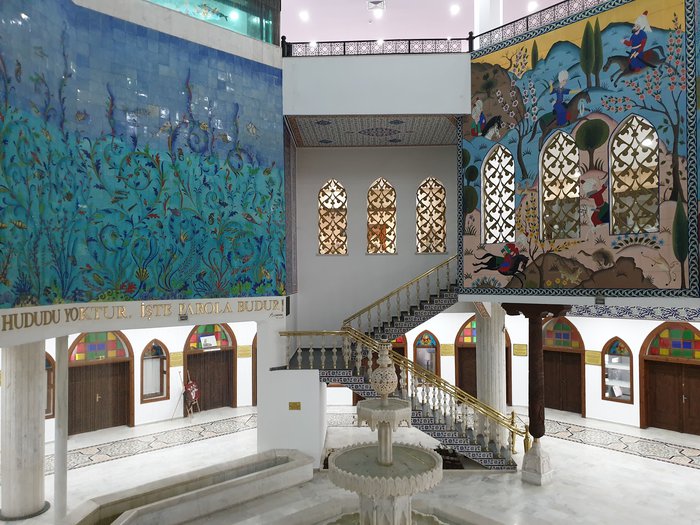 The Turkish Cultural Center of Esztergom Castle was established in May 2005 AD, and it was named after the historical Esztergom Castle, which has an important place in Turkish history, and is located on the banks of the Danube River. The center is a place where Turkish history and culture are kept alive with the Ethnography Museum and Asian Gardens. The center was built by modeling the octagonal body of the Red Tower of Alanya Castle, and the octagonal columns were decorated with inspiration from the braids of the Seljuk sultans.