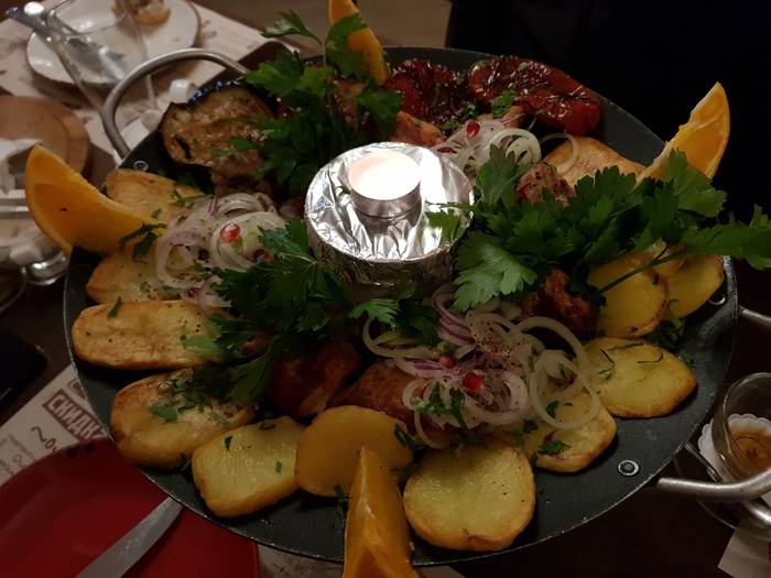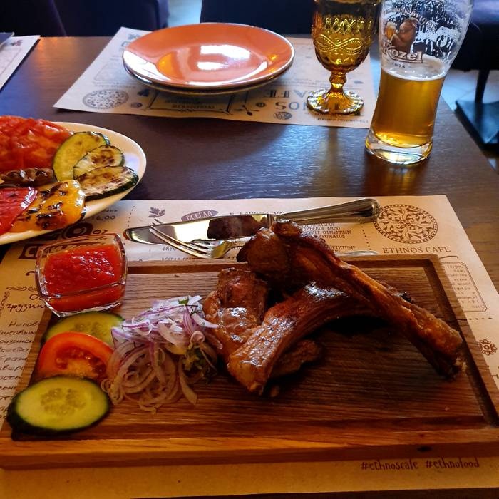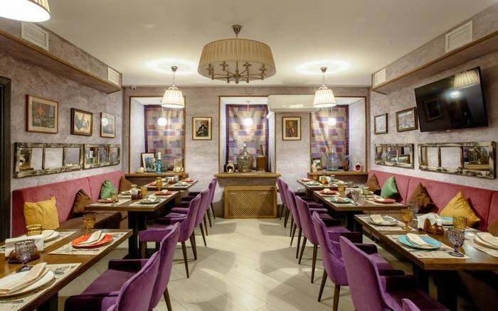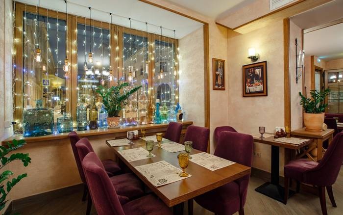 Ethnos Café is a very sophisticated cafe and restaurant in the heart of St. Petersburg. It is one of the most famous and luxurious restaurants in the city, serving Georgian, international and local dishes such as rice dishes with vegetables, grilled meat ribs dishes, curry soup, various pizza dishes, delicious Russian pierogi and grilled vegetables. Sitting inside is very beautiful, with modern decor and paintings hanging on the walls. The staff here is very nice and courteous.
