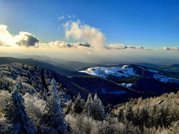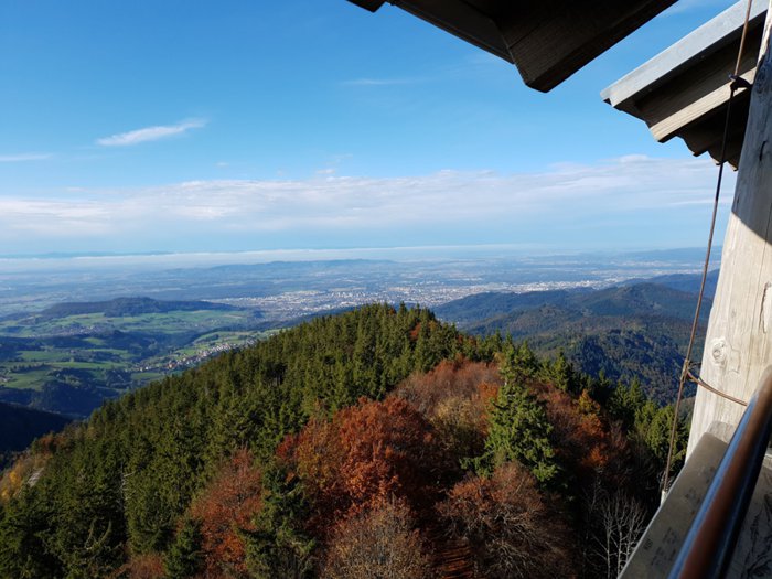 The Eugen Keidel Tower is an observation tower built in 1981 on the Schauwensland mountain near Freiburg, Germany. It is 31 meters high and has an exceptional design with a triangular cross-section. You can visit it with your family or friends to climb it and enjoy the stunning natural views of the surrounding area, which contains a lot of diverse trees and plants.