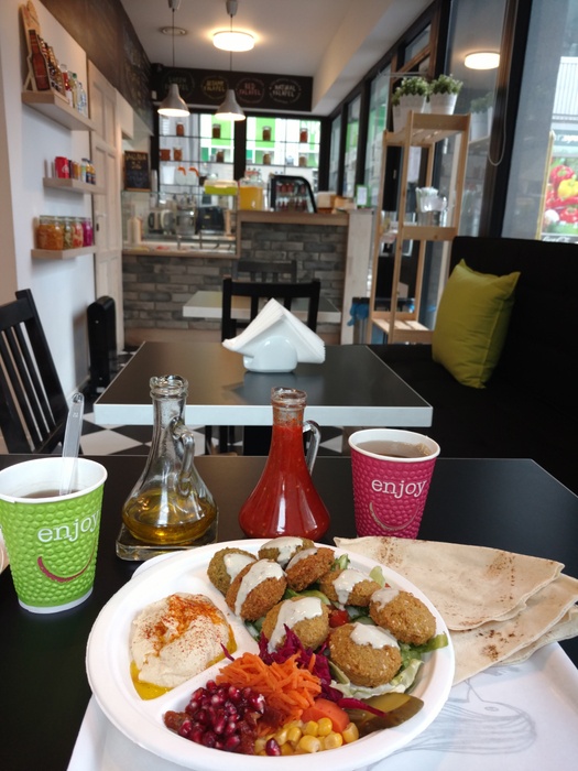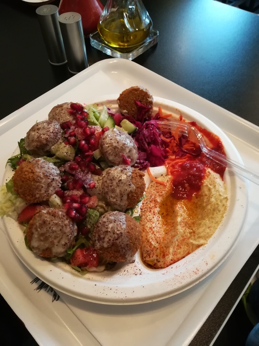 It is a small fast food restaurant with modern decor. As indicated by the name of the restaurant, its most famous dishes are falafel, and you can order it in a plate or in a sandwich, and you can add whatever you want to the falafel such as olives, cucumbers, tomatoes, and pickles of all kinds such as pickled turnips, pickled cucumbers, and pickled peppers, all these ingredients that are added to the delicious falafel make him irresistible. You can also order salads alongside the meal, such as fattoush salad, tabbouleh, and you can order hummus as well. This restaurant is suitable for people who do not like to wait, as your order will not take more than a few minutes to be prepared.