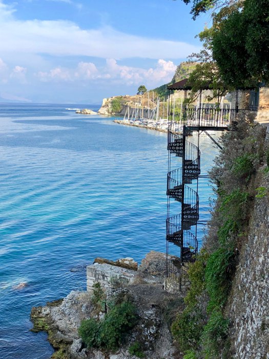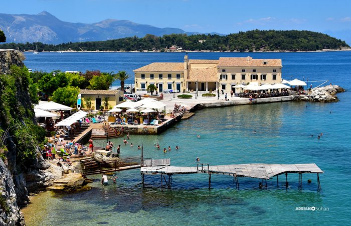 Faliraki beach is a great place to visit throughout the year as tourists and locals are always there to walk, relax, picnic, see the most beautiful view of Corfu Castle, and of course to swim. Perhaps what distinguishes this beach most is its difference from the traditional beaches. Faliraki does not have any sand or stones separating the land from the water. Rather, stairs are spread along it, and visitors use them to go down directly to the water and enjoy swimming, especially in summer.