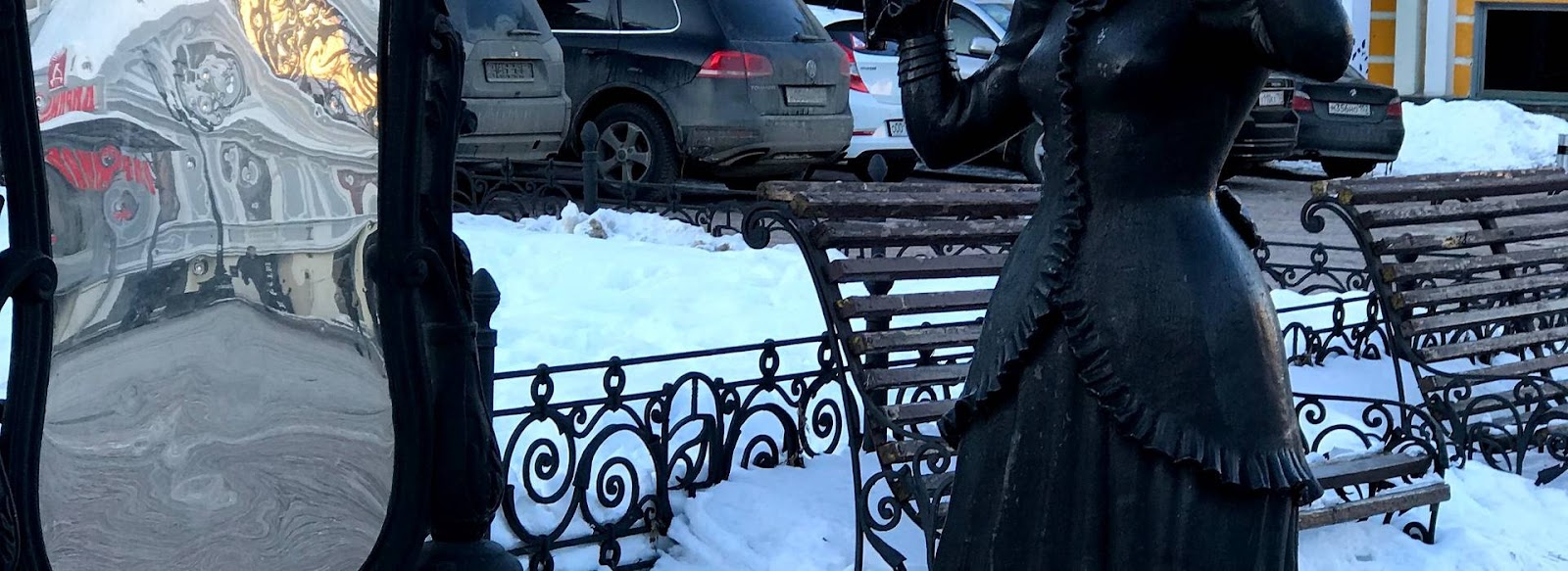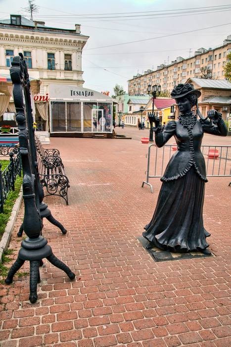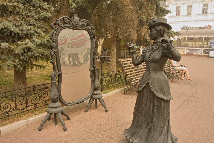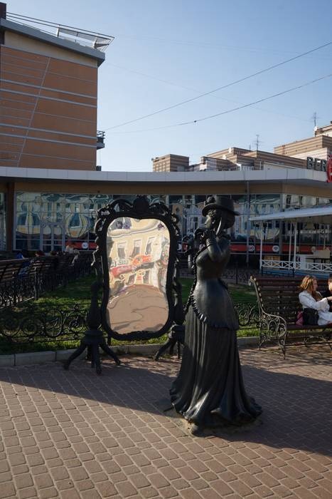 The Monument to Modern Women in Front of the Mirror, which is one of the many magnificent statues on Boulevard. B. Pokrovskaya, which is visited by many locals and tourists in Nizhny Novgorod, to take many pictures with it. Unfortunately, in advance, the mirror of the modern woman was shattered, but it was restored, as it is a different, unique and very beautiful statue in all its details.