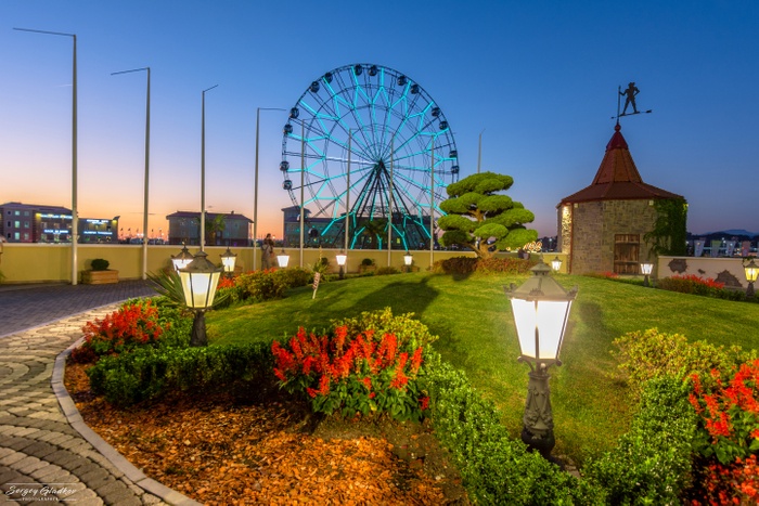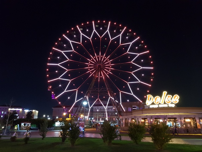 The Ferris wheel is located on Mount Akhun in the city of Sochi at an altitude of 701 meters above sea level. This wheel reaches the highest point of attraction on Mount Akhun, located a few meters from Akhun Tower, and has become the highest point of view of the city's panorama. From the top you can enjoy a wonderful view of the sea, the Olympic facilities, as well as the mountains of the main Caucasus mountain range. The place is very suitable for taking photographs. It is worth noting that the speed of rotation of the wheel is low, as the complete cycle takes 8.5 minutes. The wheel has a diameter of 38 meters and a weight of 65 tons and rests on the foundation, where 600 tons of concrete is poured.