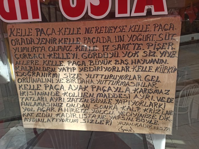 Furn Kil Pasha Kadir Usta Restaurant is a local restaurant located in the city of Erzurum. It specializes in serving veal of all kinds. Here you can order sheep’s heads or shoulder, for example, to be prepared and presented to you in a distinctive way, with authentic seasonings. Despite the novelty of this restaurant compared to the rest of the city's restaurants, it was able to gain great popularity, due to the quality of the meat served.