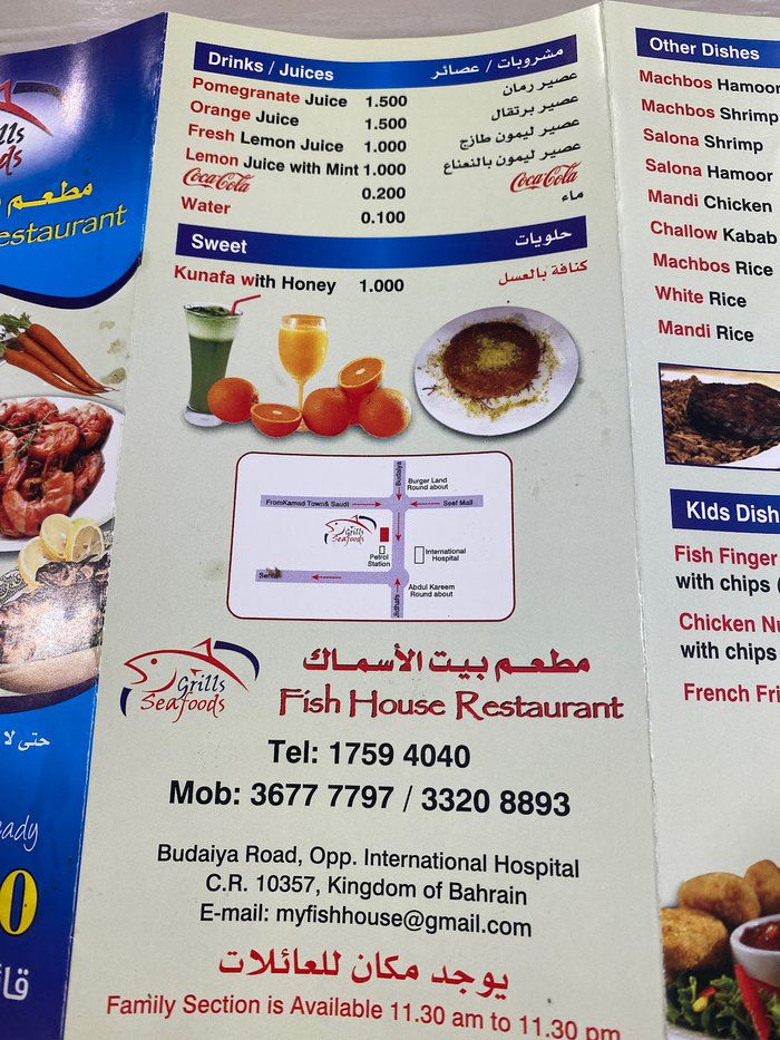 Fish House Restaurant is one of the distinctive local restaurants in the city of Sitra in Bahrain, which offers a selection of fresh seafood dishes with rich flavors and authentic oriental seasonings. The restaurant is distinguished by its warm atmosphere and friendly service.