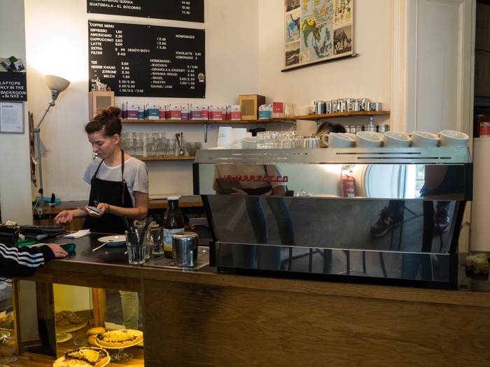 It is a small café and bakery specializing in Kreuzberg. Their goal is to provide the best roasted drinks in Berlin. They, in turn, contribute to the production and trade of coffee with high transparency and professionalism. It features a cheerful, simple Scandinavian interior with some large tables for working or meeting with friends. You can order dessert with any type of coffee you order, as they have many types of delicious desserts. The café is located near the Landwehr Canal and is ideal for a morning coffee in the café's outdoor garden.