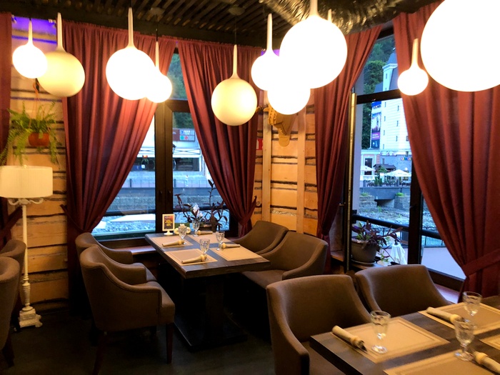 It is a very cozy and beautiful cool cafe in Sochi, Russia. It features a relaxed atmosphere with interesting designs and a terrace with stunning views of the river and mountains. The place offers an unusual blend of European and Asian cuisine. Where you can enjoy grilled fish, pizza, mussels, shrimp, grilled steaks, burgers with crispy potatoes, pasta, soups, various delicious salads and much more. It also provides a range of delicious desserts, including apple pie. There is also a wide range of wonderful and varied drinks such as coffee, cappuccino and refreshing juices.