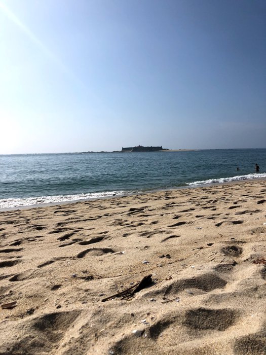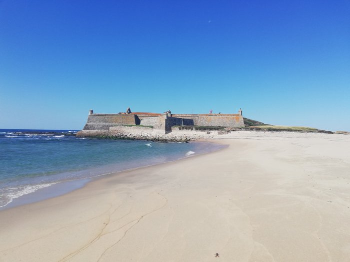 The Ansua Castle and Monastery are located opposite the famous Moledo Beach, and are surrounded by the sea on all sides. They have been classified as a national monument since 1910. The history of the monastery dates back to the fourteenth century, while the castle dates back to the seventeenth century from the reign of João IV. Its plan is an irregular star with five bastions, and it houses the Franciscan convent, which was expanded in 1676.
