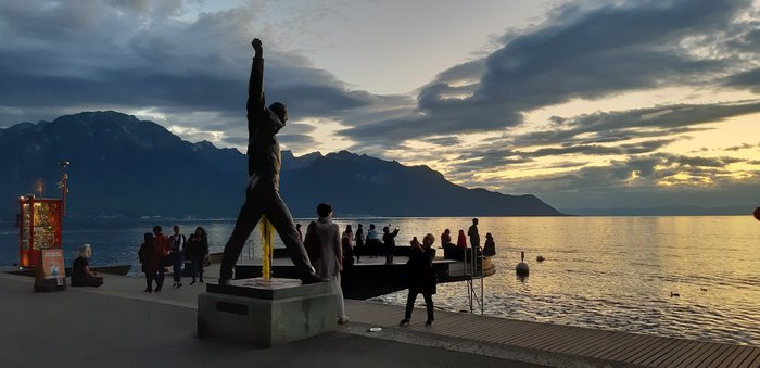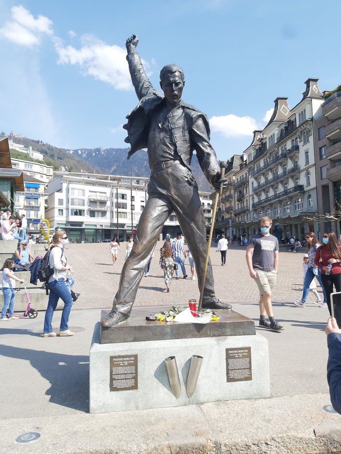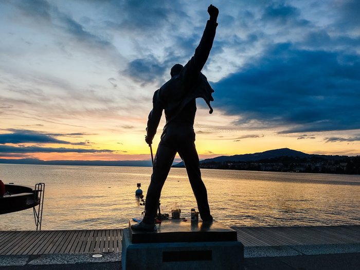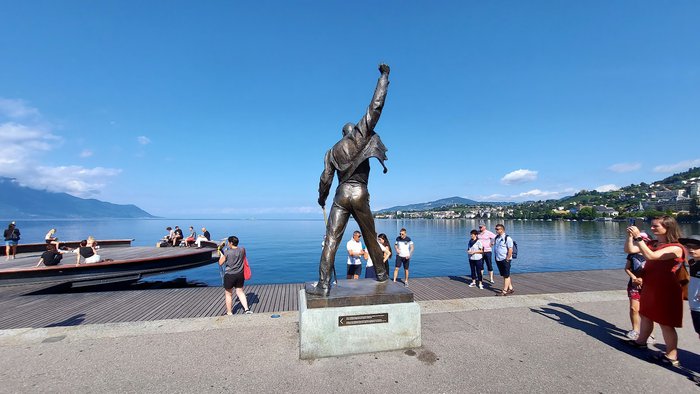 The bronze statue of Freddie Mercury, located on the bank and promenade of Lake Geneva, was carved in 1996 AD by plastic sculptor Irena Sedlecká, in honor of this wonderful singer and musician and in commemoration of his memory in the town, as he visited it and recorded his last album there ; There is also a wonderful Jazz Festival alongside it.