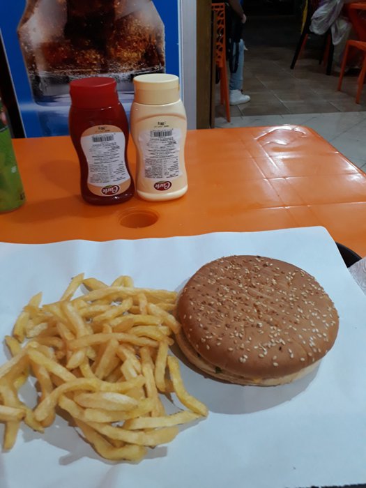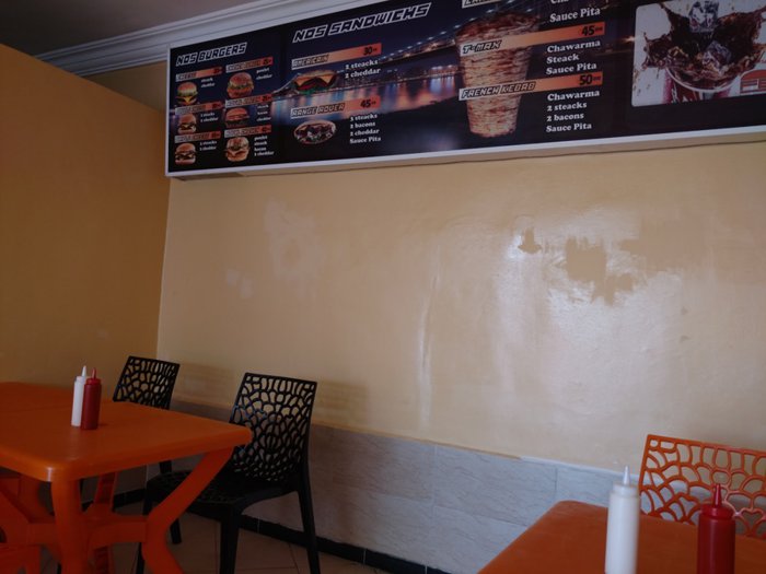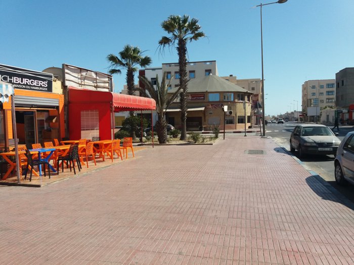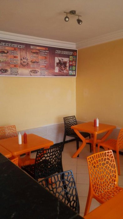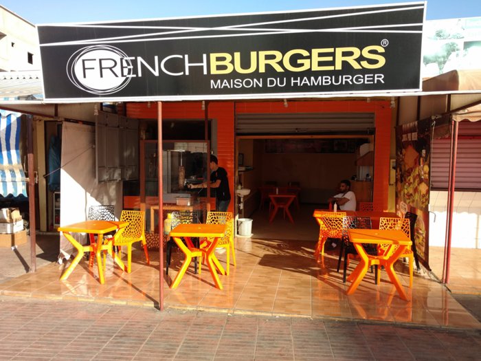 Fast food restaurants, characterized by serving delicious meals in a short time and at a high speed, as is the case in the French Burger restaurant located in the city of Dakhla, which has comfortable sessions of black and yellow seats, where individuals sit, enjoying eating options from American burger sandwiches that are served with fries Fried and refreshing drinks.