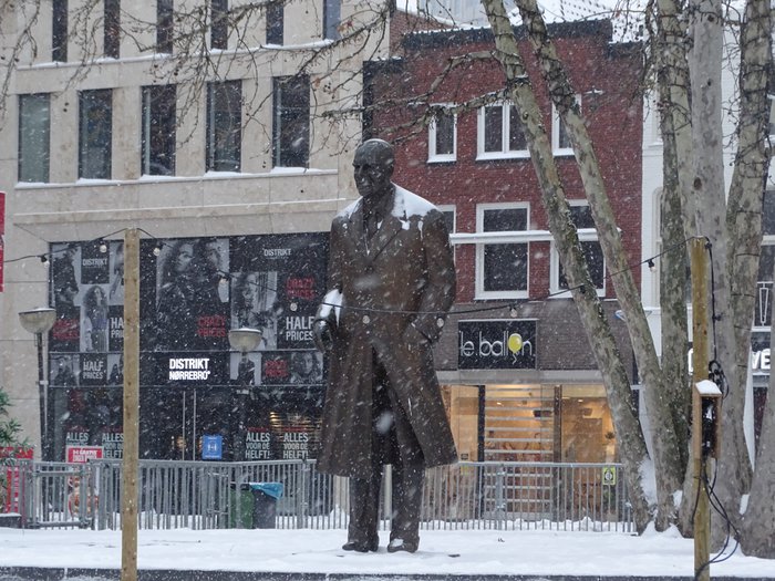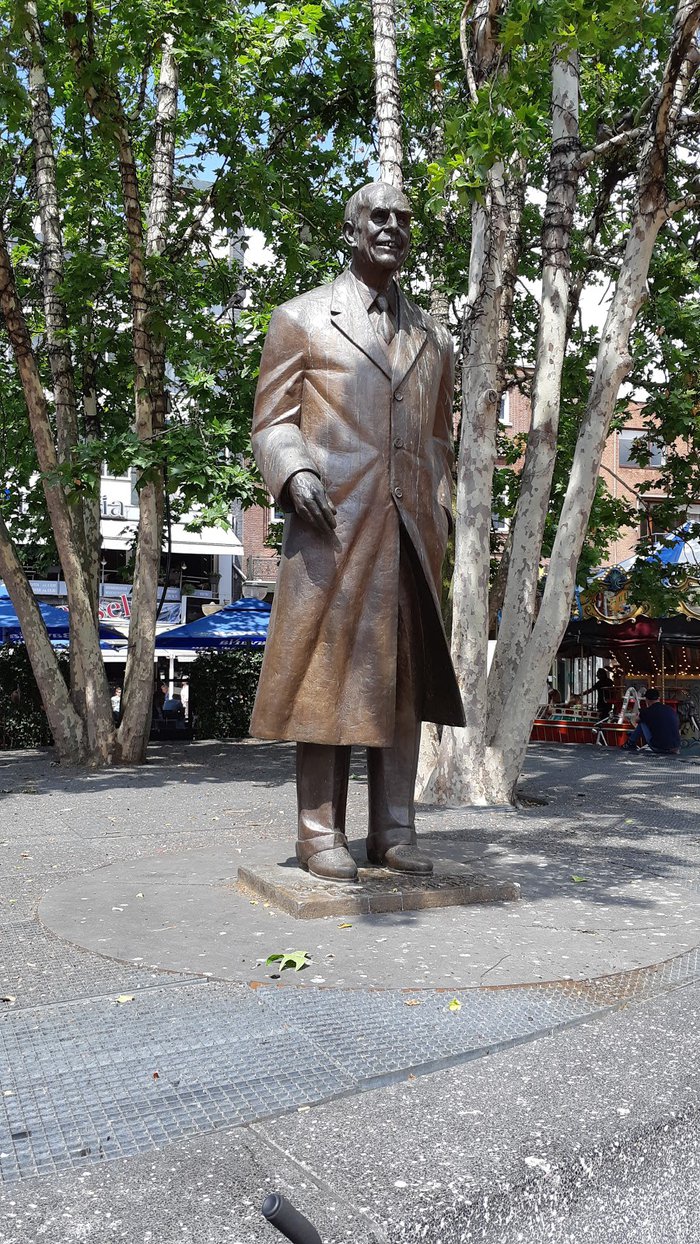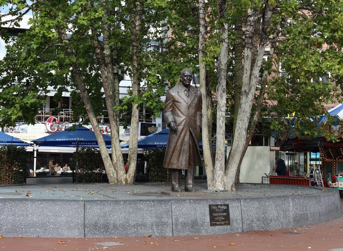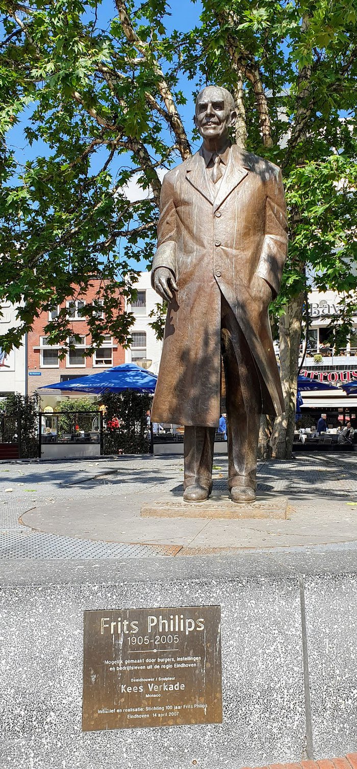 The Frits Philips Monument is located on the market square in the city center of Eindhoven. It was unveiled to the public in 1997. It is the work of the famous Dutch sculptor Kees Verkade. The Frits Philips family was shown five models of possible sculptures. To choose from and think the current model is the most appropriate. The statue is made entirely of bronze and is about three feet high. It represents the nephew of one of the pioneers of the Philips company, Gerard Philips, who later became president of the company, and then died at the age of 100 in 2005.