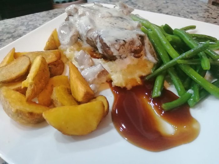 Caesar salad with chicken, grilled chicken breasts with white cream, mashed potatoes, grilled kebab sticks with vegetables, spaghetti with mussels, hot Italian pizza, meat sandwiches with cheese, fried cheese sticks, and many others, are among the unique options that the menu includes in Gallito Restaurant, located in the corridors of the city of Chefchaouen.