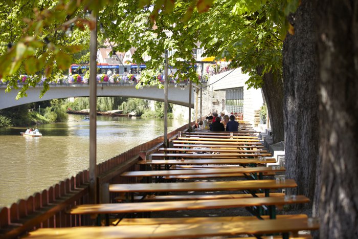 This restaurant is located in a vital location on the banks of the Neckar River, and visitors prefer to visit the restaurant in the evening hours when the restaurant is filled with visitors and the outdoor courtyards covered with chestnut trees overlooking the river are lit in a scene that no one who visits the place will forget. The restaurant serves traditional German dishes and some popular European dishes. Among the dishes it offers, visitors will find schnitzel with cheese, steak, meat stew and many others.