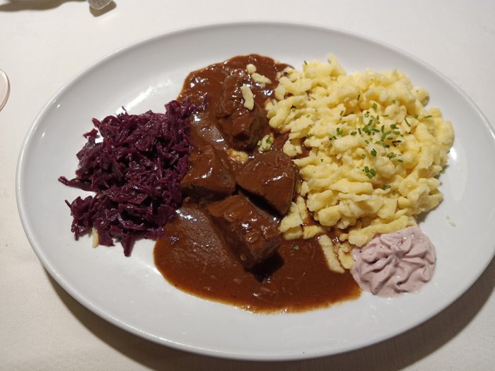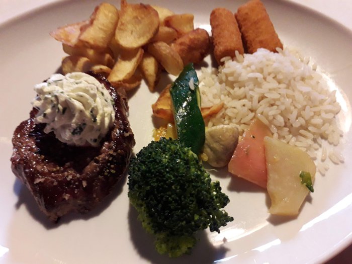 The menu of Gustav Hirschen Restaurant contains a selection of European cuisine and Austrian specialties prepared with great precision and care, and is served in a modern way with various appetizers and refreshing drinks, in an intimate and comfortable environment, with excellent service and at competitive prices; When visiting, you can choose from grilled steaks, risotto, ravioli, fried chicken fillet and more.